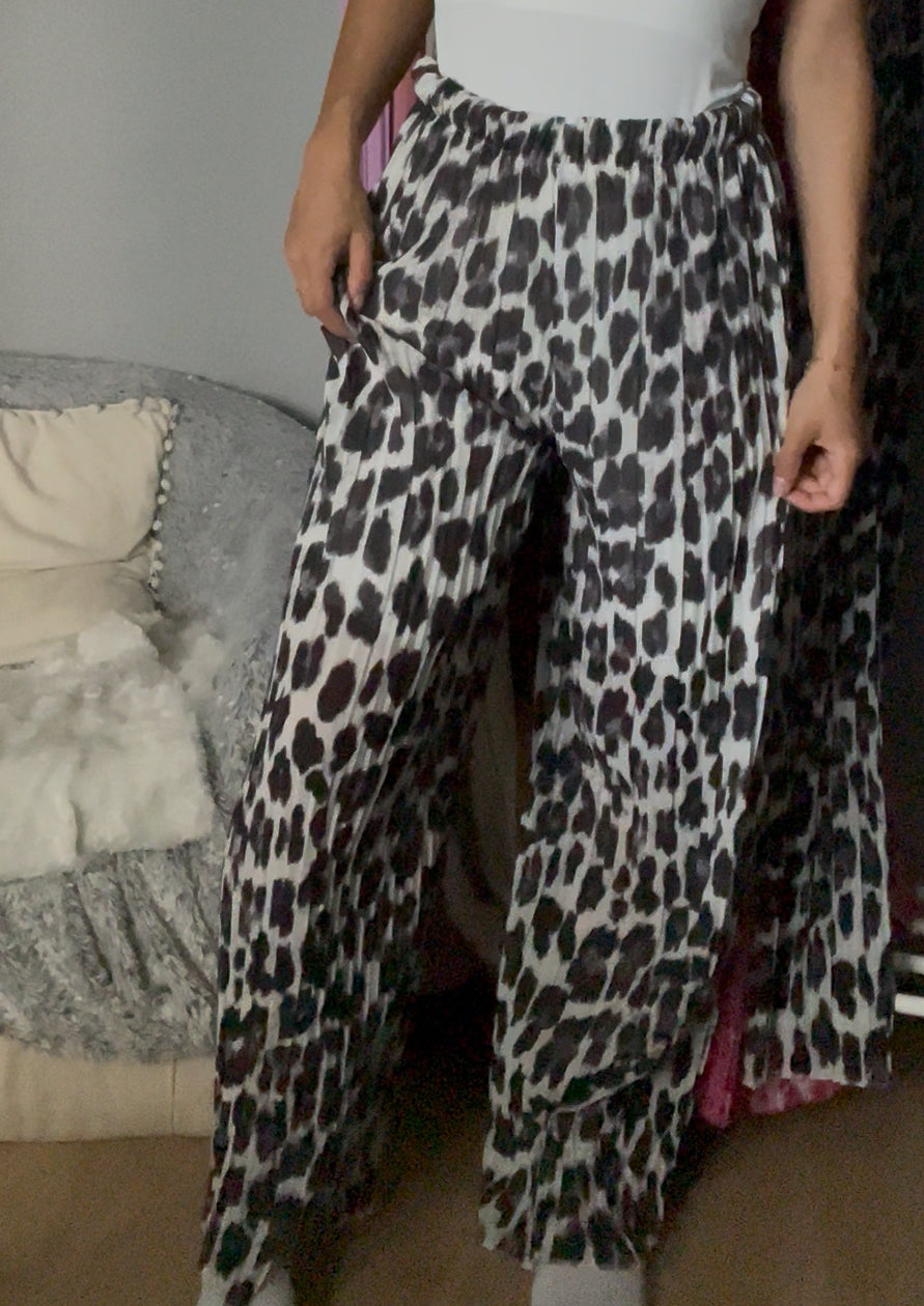 Pantalon Lydia plissé très fluide, imprimé avec doublure en viscose. Correspond à un 34 / 36 / 38 / 40 / 42 / 44 voir un 50.